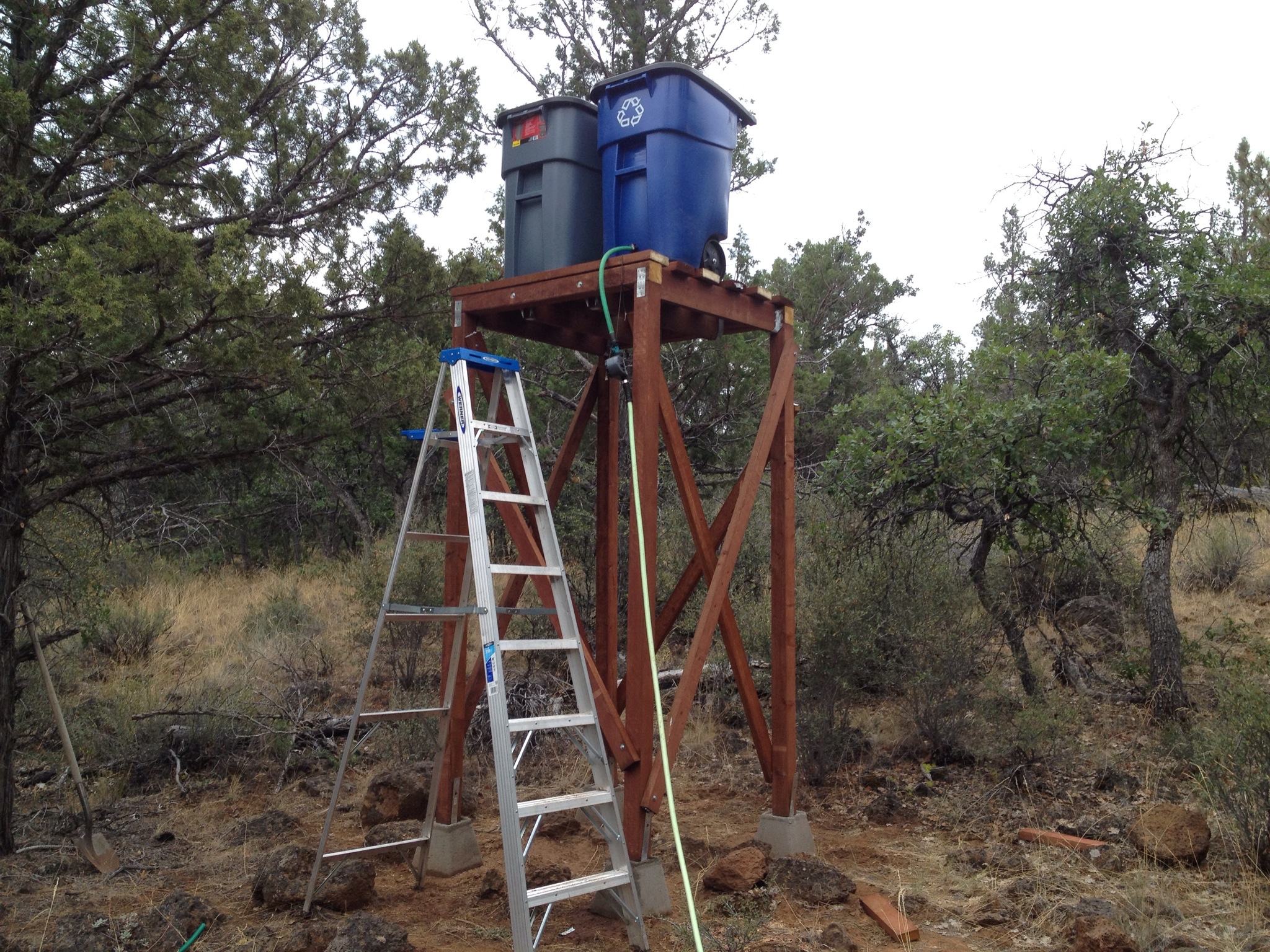 One option was to build an automated system to transfer water from the bigger tanks to the water tower. But, automated things are prone to fail, and if the system failed, the 50 gallon reservoir wouldn’t last very long. Plus, the “water tower” was starting to show some age, being made of untreated 2x4s and having been exposed to the elements since 2010.